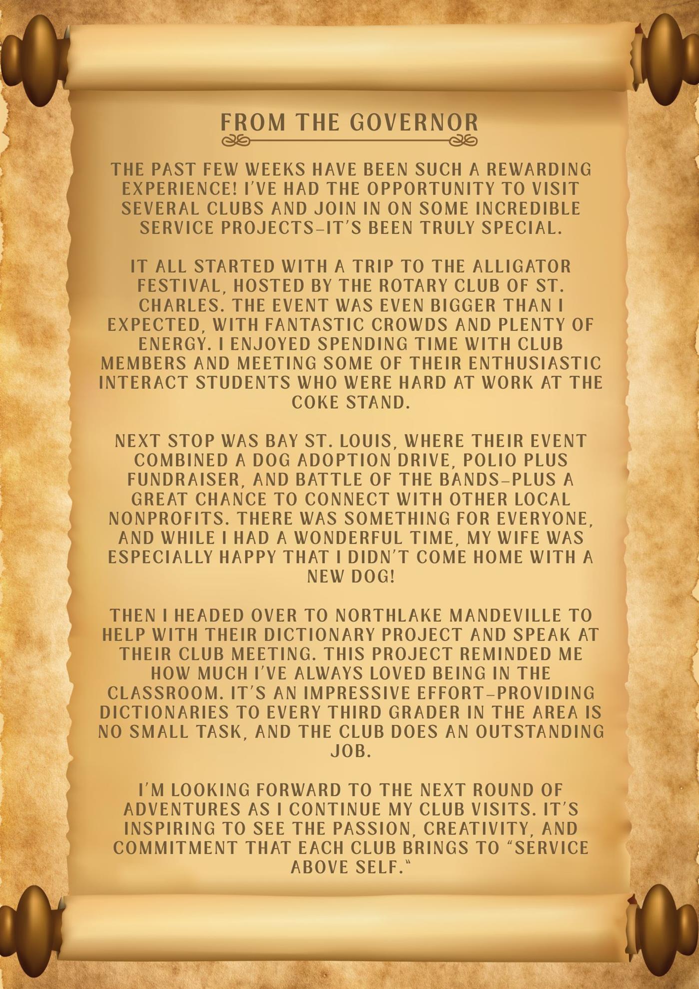 One of the highlights of the week is PDG Ace Necaise’s “Miles for Polio” 100-mile bike ride, taking place in recognition of World Polio Day. In honor of Ace’s inspiring effort, DG Keith Clayton has issued a special challenge: