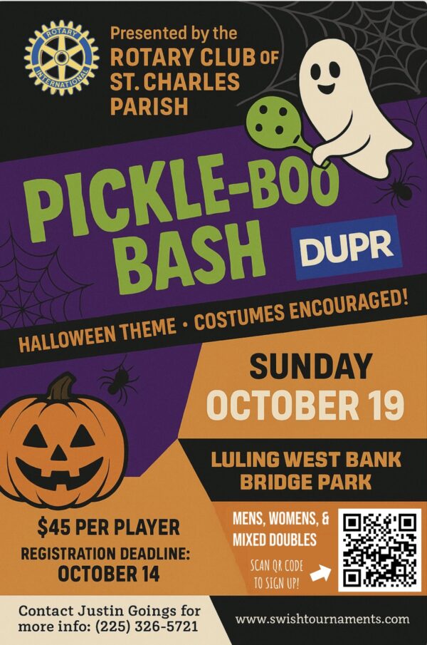 Get ready for a spooktacular pickleball tournament on Sunday, October 19 at Luling West Bank Bridge Park! This is more than just a tournament—it’s a Halloween celebration with a purpose.